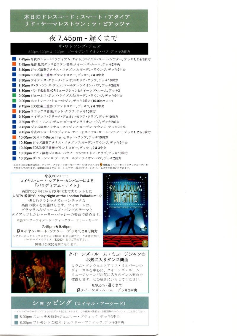 今夜のショーは、プロダクションショー「パラディアム·ナイト」です#クイーンエリザベス#QueenElizabeth#CUNARD pic.twitter.com/0A6KTw2Hj6