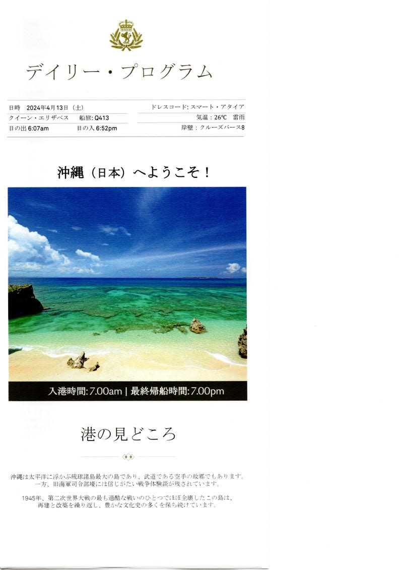シリーズページを見る2024クイーン・エリザベス乗船記(4/14 day8)