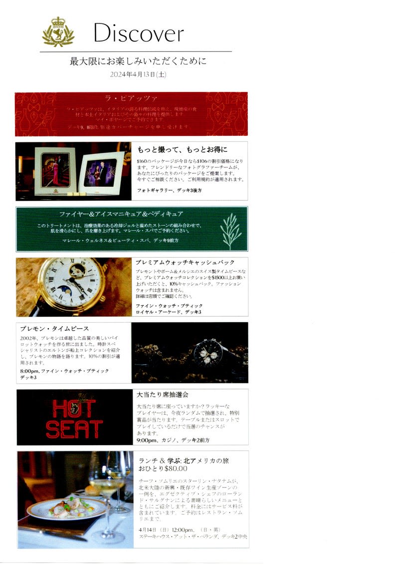 2024クイーン・エリザベス乗船記(4/13 day7)