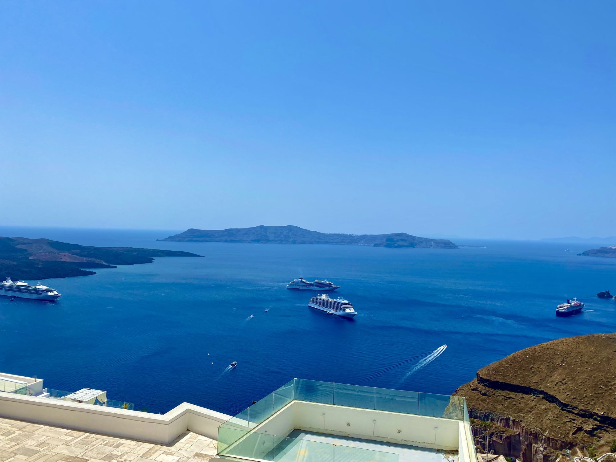 ロマンチックな青いドームの教会、狭い路地にブーゲンビリアが咲き乱れる白壁の家、洞窟ホテルのプールから断崖絶壁下に広がる紺碧のエーゲ海と、インスタグラマーにとっては最高の映えスポット満載のサントリー二島は空港もあり、滞在型バカンスを選ぶか、クルーズ船で巡るべきなのか、悩ましいところである。まずはクルーズで触りの部分を楽しみ、いつか、滞在するとか、そんな楽しみ方もあるのかなと感じる。