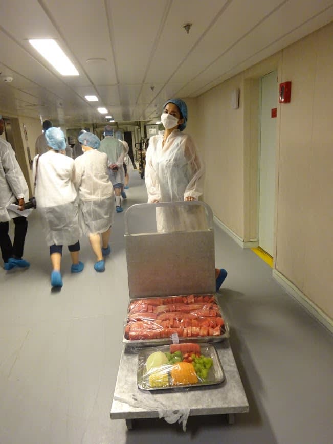 MSCでは毎日さまざまなイベントが行われている。ビンゴやファッションショー、ビールパーティー、ホワイトパーティーと枚挙にいとまがないが、その中で最も私の心をつかんだものが「Behind the scene」、つまり裏側を見せてくれる魅惑のツアーである。但し有料である。船内の奥を見せるだけなのにお金とるの?と思ったが参加。有料なのには理由があることが最後にわかる。