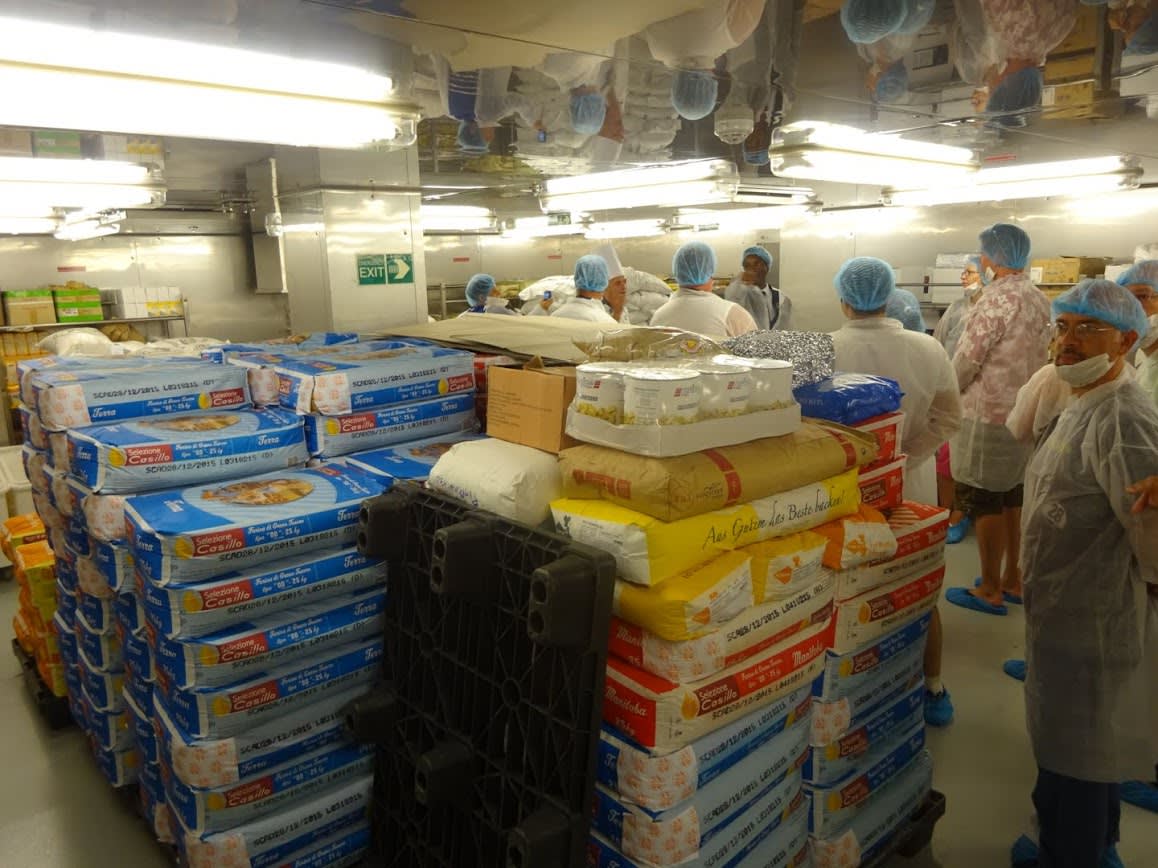 シアターの楽屋から始まり、食糧庫、ベーカリー、クリーニング現場をみせてもらった。特に食糧庫はCostcoをそのまま持ってきた感じで、ここで5000人の食事が賄われるのだ。