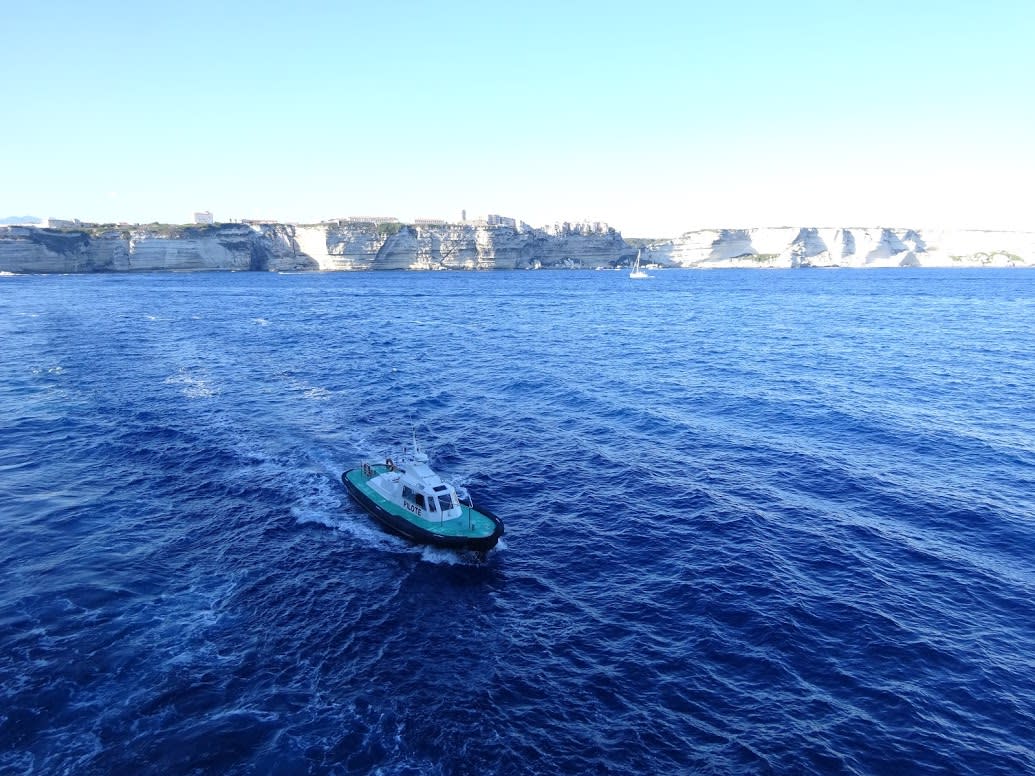 またある時は、荒れ狂うボニファシオ出航後、ポナンの帆船から役目を終えた案内人が、乗客乗員全員が見守る中(ヤジも飛んでた)左右に揺れて今にも転覆しそうな水先船にスタントマンさながらにパタリと乗り込む。