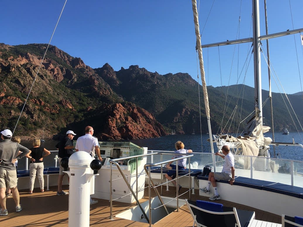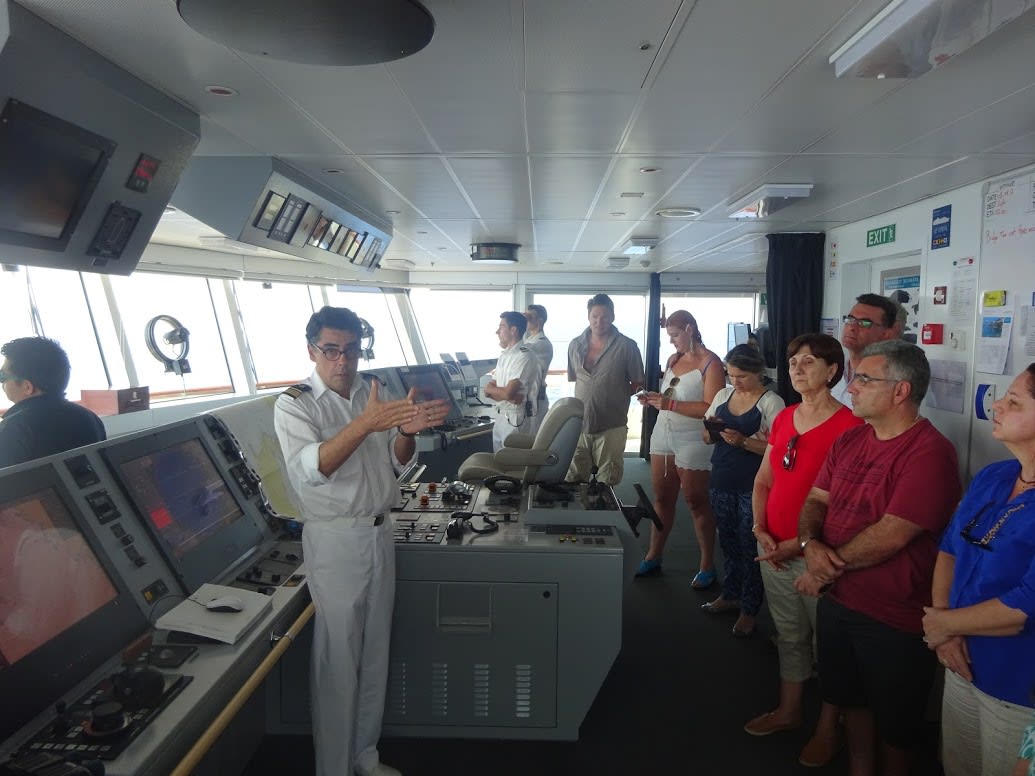プロフィールを見る帆船ポナンはオープンブリッジ、いつでも気軽に出入りすることができた。さすがはオーナー気分でクルーズというコンセプトでつくられた旅である。