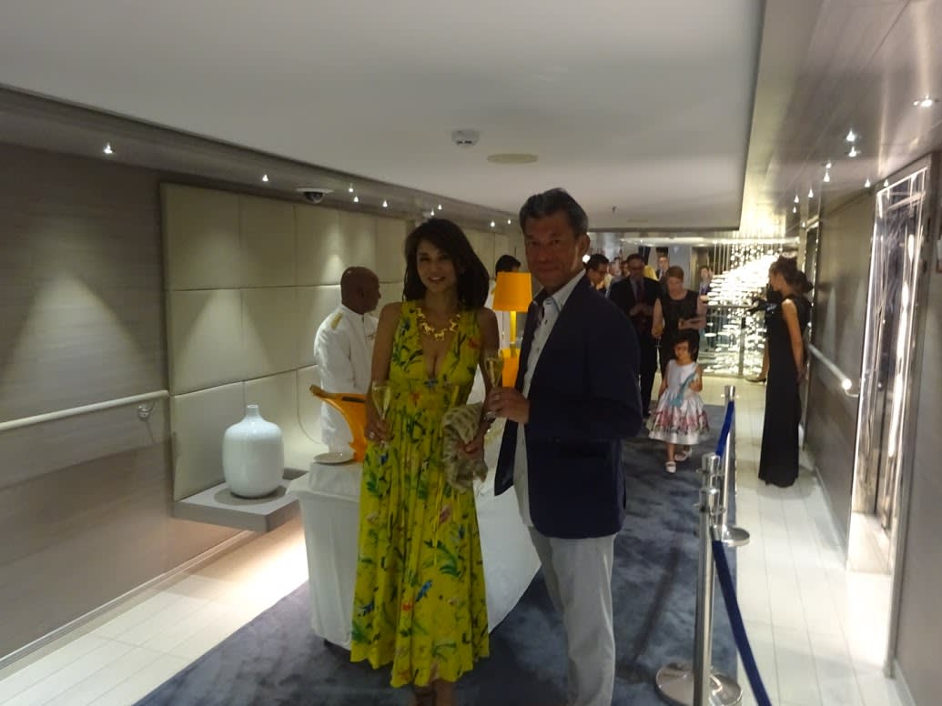 今回の旅も2回のガラディナーが開催された。アペリティフは通常プールサイドで夕日を眺めながら、というのが理想であるが2回とも強風のためテアトルでの開催となった。うーん、窓がないからなぁ、やっぱりデッキで海風にあたりながらシャンパン飲みたい!