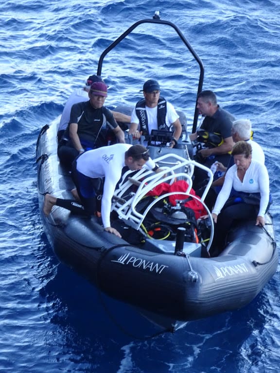 今回はスイスからきたカップルと仲良くなれた。ご縁とは不思議なもので、フォールドフランスのホテルを出てポートに向かうときに、タクシー待ちを互いにしていて、一緒に乗らないかと声をかけてくれたカップルである。こちらでも別の車を手配していたし、何より、おそろしい荷物の量だったので、丁重に遠慮したがその気持ちがうれしかった。