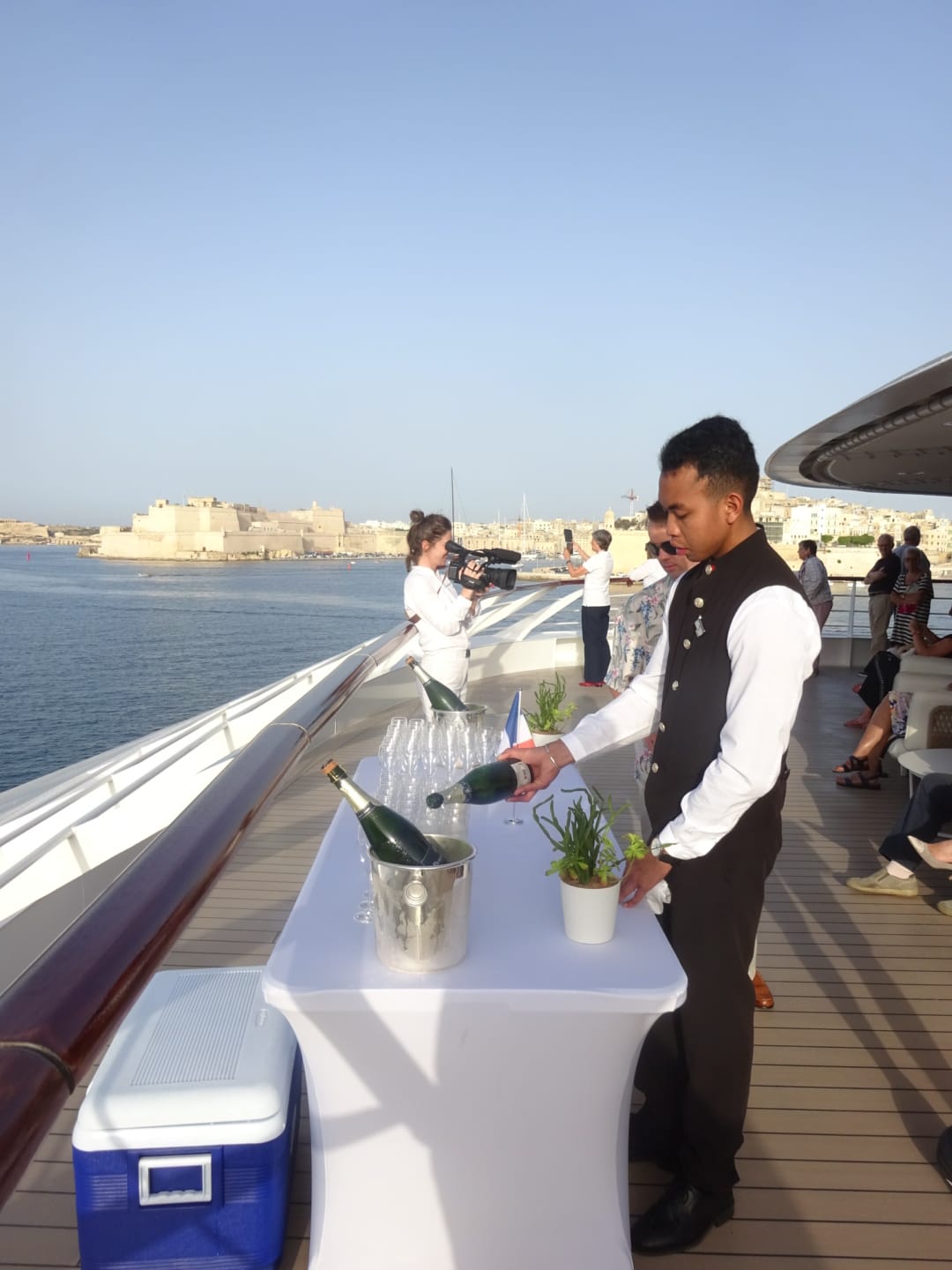 最近はクルーズ船寄港地として賑わうヴァレッタ。街は船が寄港している時間だけやたらに人であふれている。そんな要塞都市をバックに出航というのもなかなか乙なものであった。今回いつもと違っていたのは、乗船後すぐに部屋に案内されたことだ。ラウンジに通され案内されるまで待たされるというのが常だったので拍子抜けした。
