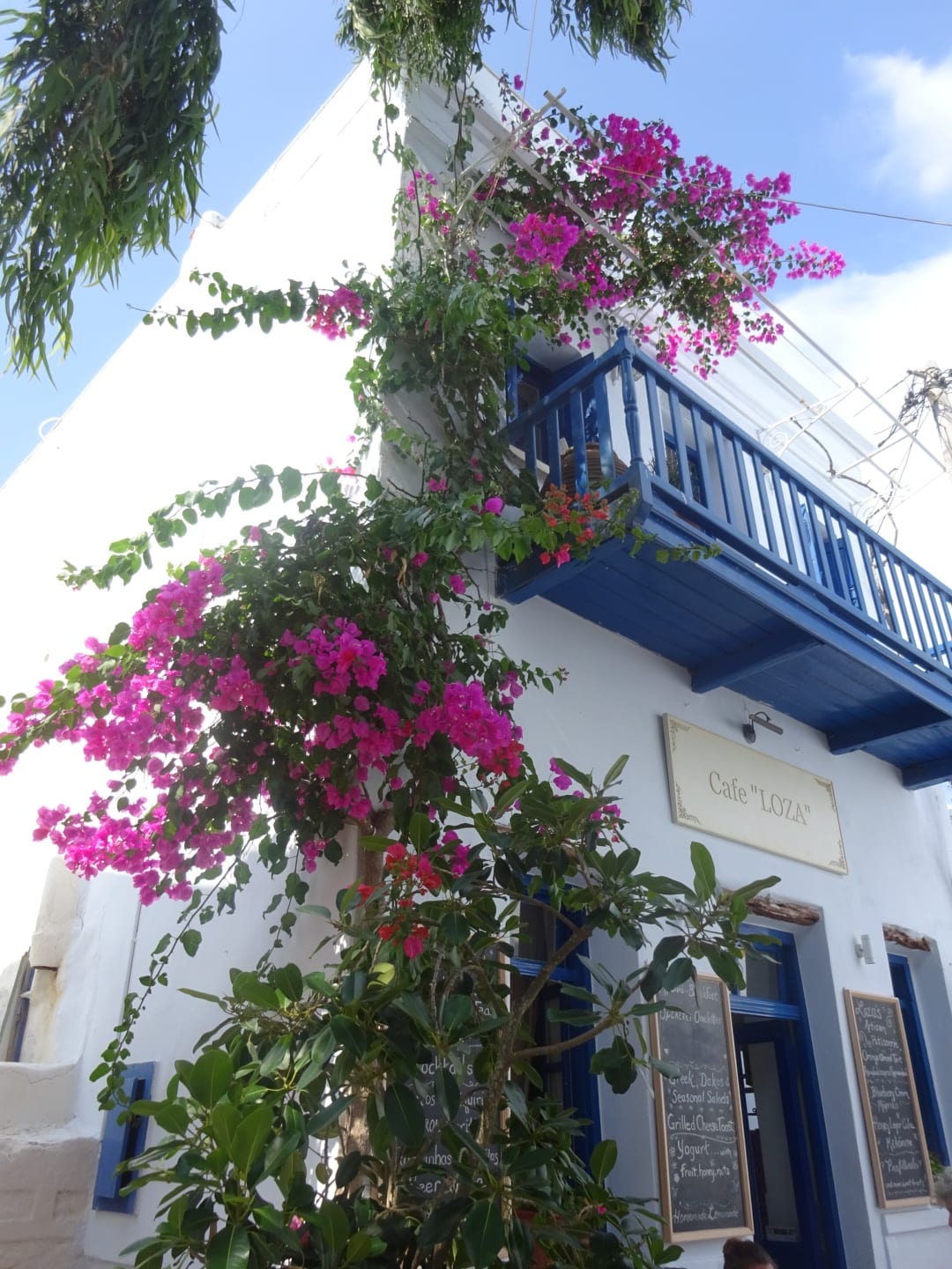 その後、自由行動となったホラの町でブーゲンビリアの咲き乱れるカフェにてビールを飲み、あちこちで自由にくつろぐ猫たちと戯れながら、東京に置いてきた愛猫を思い涙したのであった。