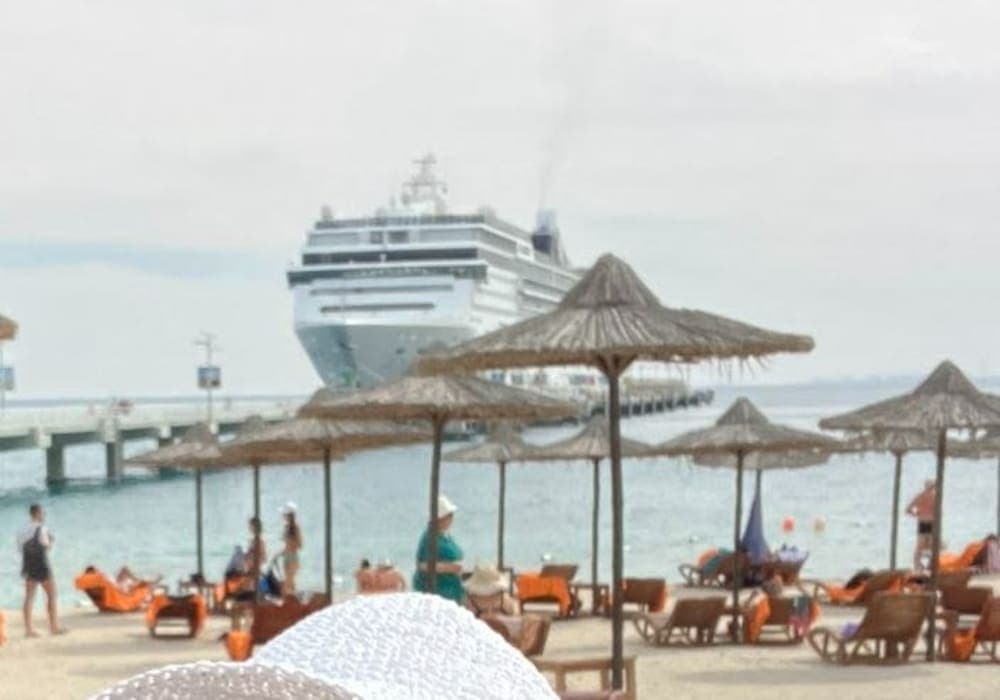 テンダーボートに乗って上陸しました。 チケット番号は1-16まであり、9時から12時半まで30分毎に出発。 乗船時間は自由に選ぶことが出来ました。 シルバニヤス島には、アラビア最大の自然保護区があり エクスカーションでは「サファリツアー」が人気の様でしたが、私達は参加せず。 上陸した時間が早かったせいなのか、シーズンオフだからなのかは不明ですが ビーチはガラーンとしていて、活気が全く感じられませんでした。