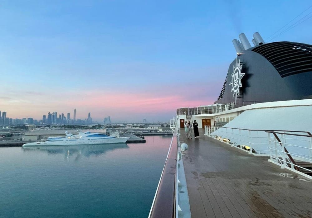 ドバイの停泊が長く、ホテル代わりに使う方法があります。このシーズンドバイのホテルはものすごく高く、良く知っている人は、クルーズ船をホテル代わりにドバイ観光をするようです。停泊も、MSCとTUIが昔からのラシード港を使い、COSTAとAIDAが新港を使います。らシード校の周りは所謂オールドドバイで、スークが沢山ありますし、新港はパームジュメーラの付け根にあり、JBR(ジュメーラビーチレジデンス)が一望できます。ブルジュハリファのあるダウンタウンは、どちらの港からもタクシーで20~30分ですが、夕方から夜中までは渋滞が激しく時間の余裕は見る必要があります。