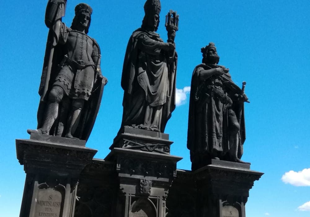 プラハ歴史地区観光(カレル橋・旧市街・プラハ城)いくつかの建物が集まったようなお城で、美しい城でした。衛兵さん2人と写真を撮ってもらいました。カレル橋は、両側に聖人像が、数多くあります。お土産も売っていたり、演奏している人たちも見ました。カレル橋は、眺めの良い橋です。歩いているだけでも、楽しい雰囲気でした。ドナウ川を船が行き来している風景に引かれ、スケッチをした場所です。自由行動の時間には、ガイドブックで調べた青空市場にも、足を運びました。お土産物とカフェが多くありました。トラムにも乗れ、ホテル近くのスーパーで買い物もでき、良かった!と思っていたら、最後の最後にホテルまでの道を間違ってしまい、長い時間歩いたのを思い出します。最後に「美しく青きドナウ」を想像していましたが、残念なことにブダベストからずっと、川の色は茶色でした。時の流れは、仕方ないことですね。