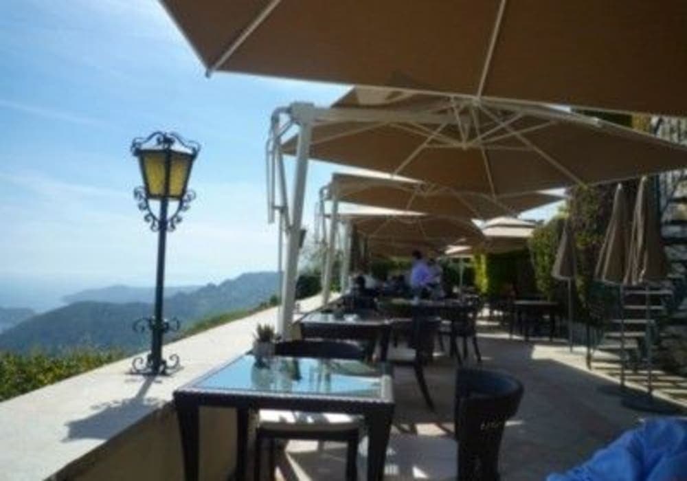 ミニトレインで回った後、タクシーで前に泊まったエズのシャトー・ド・ラ・シェーブルドールに行き、眺めを楽しみながらお茶。