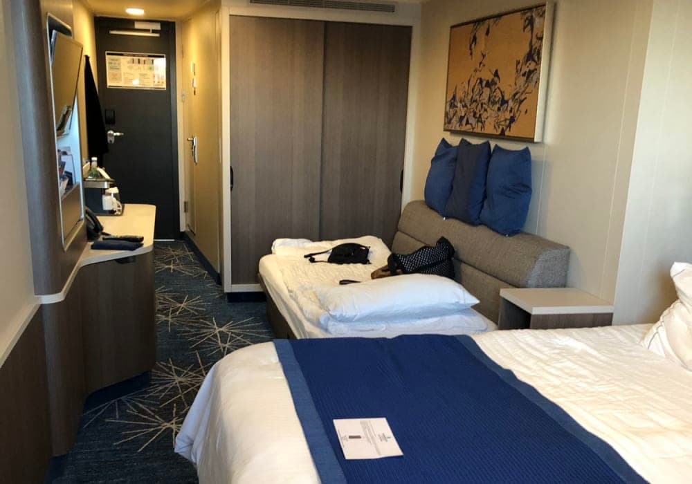 毎日寄港し、終日航海日が無かったので、客室でゆっくりする時間は短いと考え、安い内側にしました。初日乗船したのは11:30過ぎで、まだ客室の準備が終わっておらず入室できず。客室の準備が終わったとアナウンスが流れたのは14:30過ぎ。その間は、ビュッフェでランチ等しながら過ごす必要がありました。入室すると、既に荷物は...