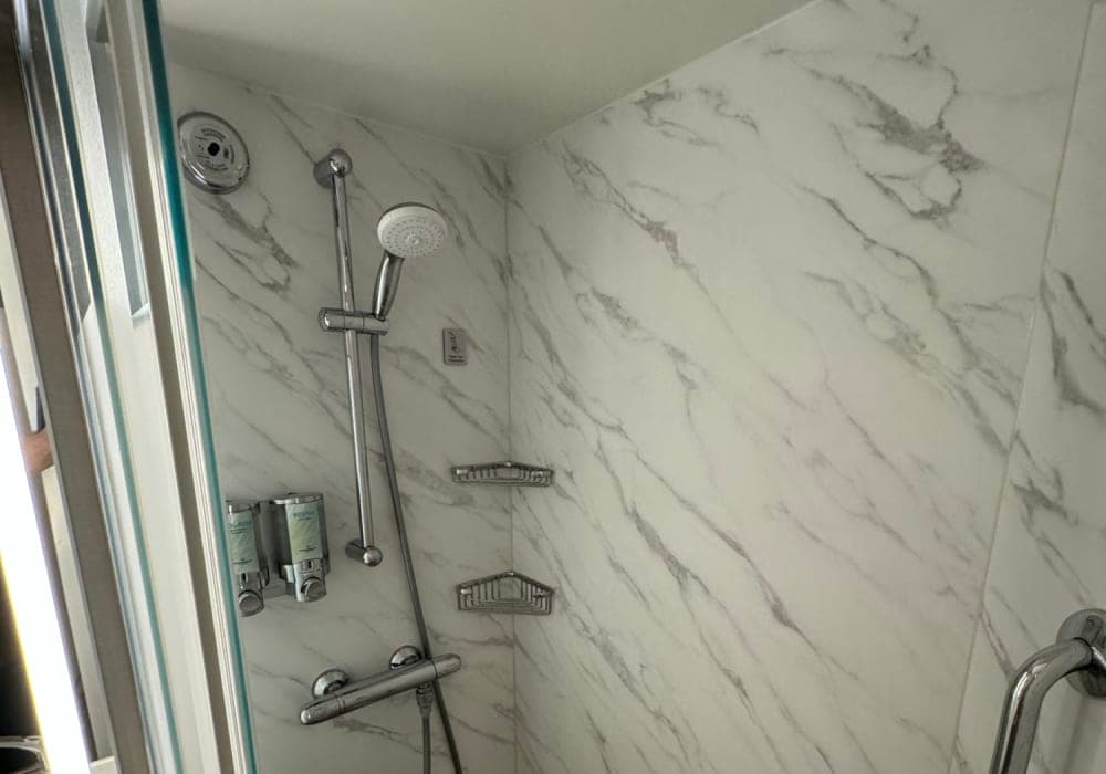 収納も多く、快適に過ごせました。特にシャワーがカーテンではなくぴったり閉まるタイプのつくりなのがよかったです。