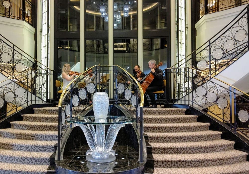 ライブラリやバーのソファーなど様々な場所での調度品が素晴らしく、船内の居心地を高めてくれました。 また、ラウンジやバーなどでの、ピアノや弦楽四重奏の生演奏も落ち着きがあって心地良かったです。