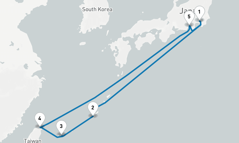 10日間 / 9 nights / 10 days, Yokohama (Tokyo, Japan) Round trip Okinawa Keelung