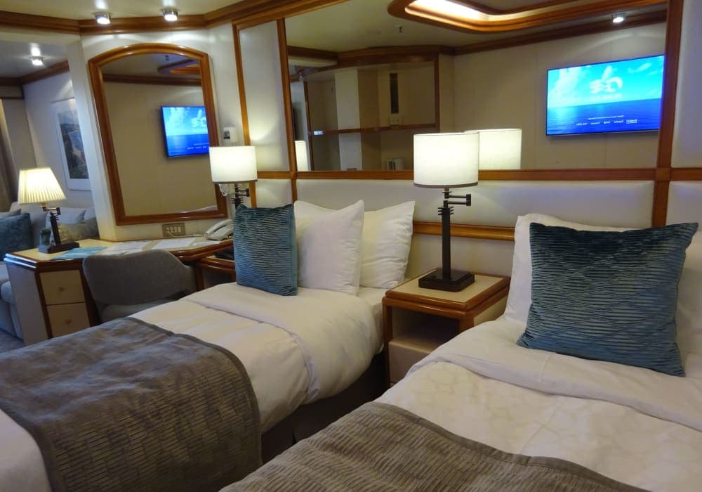 コロナ禍で過去に2回分の予約がキャンセルとなり値引き、OBC等の特典を利用し格安で乗船出来るため休暇が取りやすいGWとSW利用を検討しました。GWはQE乗船にしたためSW乗船にしました。通常は客室をバルコニーにしていますが、今回はジュニアスイートにしました。