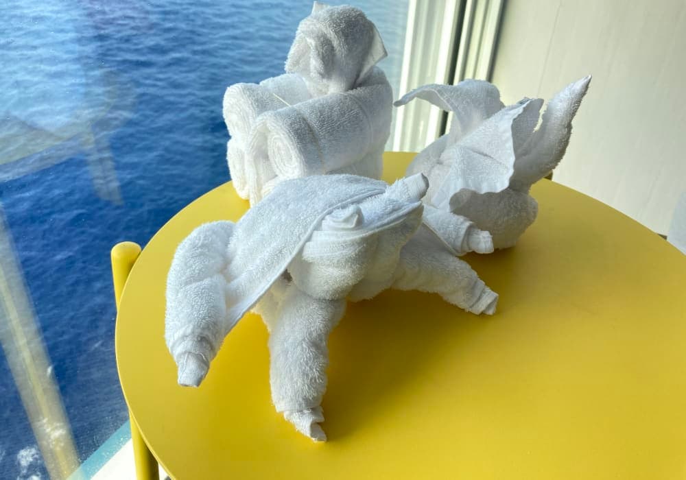 清潔感がありました。普通です。 内側キャビンは初めてでしたが、窓なしの部屋の閉鎖感がなく、中の広場で行われていることがベランダから見えたりと楽しかったです。夜遅い時間(9、10時過ぎ)のダンスやショーの音楽が漏れ聞こえるので、静かな環境でないと寝れない人は避けた方がいいかもしれません。