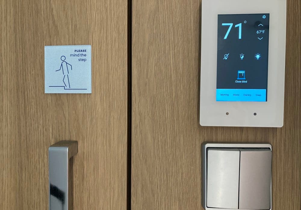 インサイドでバーチャルバルコニーが付いているキャビンでしたが、部屋のレイアウトが長方形ではなくほぼ正方形でした。そのためスペースが広く使い易い工夫がされていました。 バーチャルバルコニーには船尾に取り付けられたカメラの映像が常に流れていて、カーテンも付いています。 プーケットではちょうど船尾が西側を向いて停泊して...