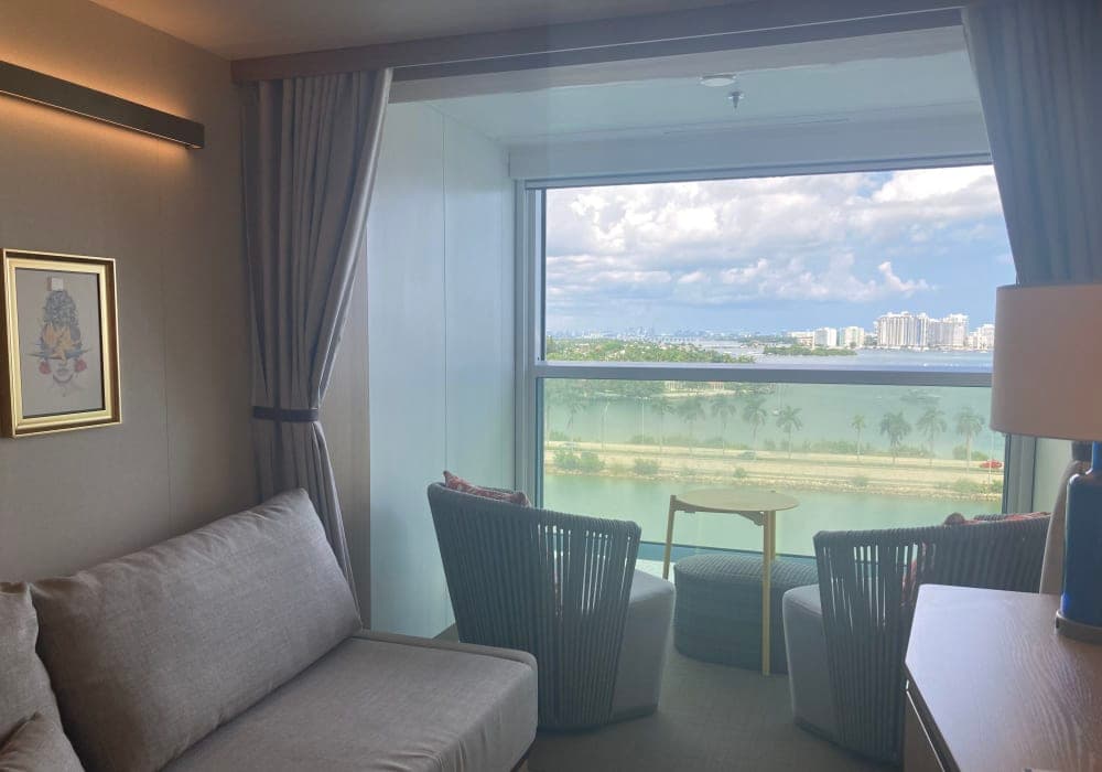 ■インフィニットバルコニー アイコンクラスから登場した新しい形のバルコニーのキャビン。 壁一面が窓で、上半分は全開にすることが可能。 バルコニー部分まで部屋の一部として使えるのでとても広く、部屋も明るく部屋から水平線を眺めることが出来る究極のオーシャンビュールームでした。 ■キャビン担当 バリ出身のインドネシア人...
