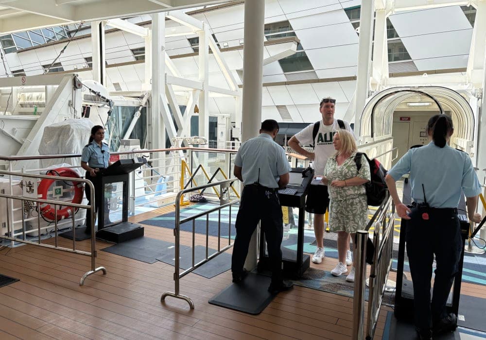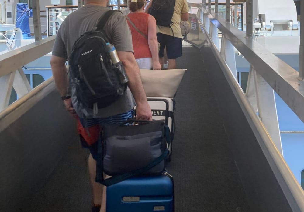 ANA羽田ヒューストン線の直行便で到着後、シャトルバスを利用してガルベストン港から乗船。当日午前11時に羽田を出発、同じ日付の11時にJewl乗船。便利なルートです。ただし時差ぼけで眠い眠い。前日には着いてコンディションを整えることをお勧めします。高齢の身にはこたえる