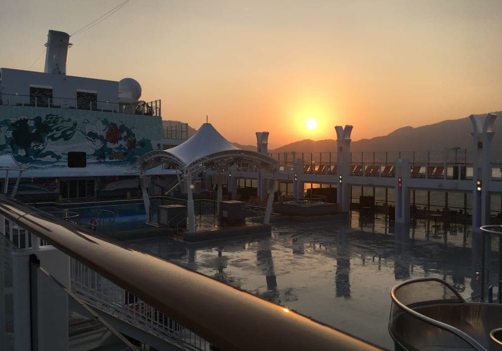 本当は、横浜から上海へ向かうSuperStar Virgoに乗船予定でした。吉本の芸人も乗船すると宣伝していたもので、楽しみにしていました。ところがこの夏、変な台風が航路上をウロウロしており、乗船の約1週間程前にクルーズがキャンセルされてしまったのです。しかし、職場で調整済みの自分の休暇予定は変更できないので、同...