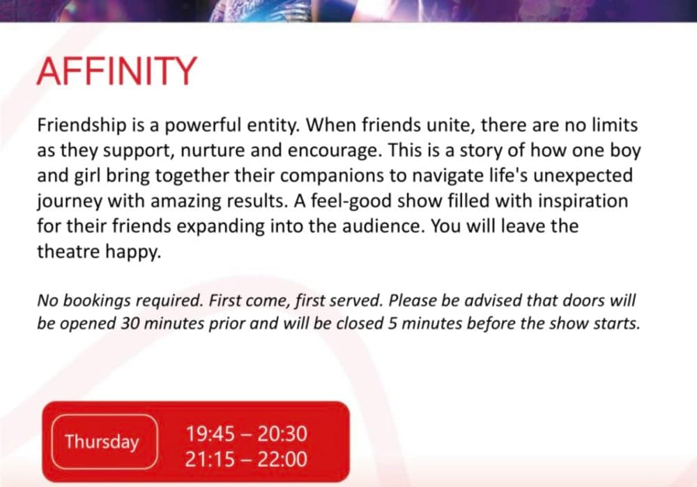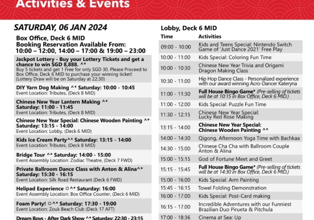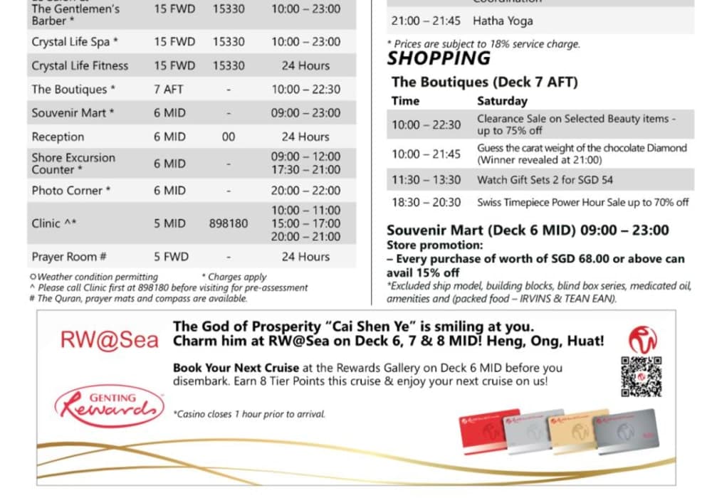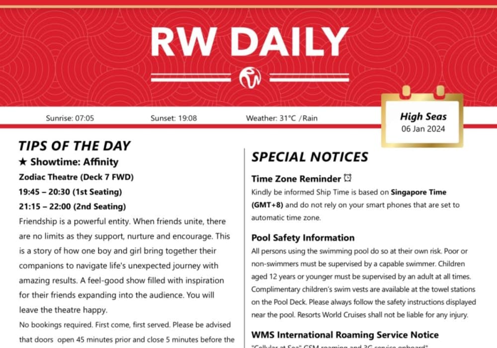 同じ航路を繰り返し運航する定期船のようになっているので、シアターでのイベントは航海ごとに繰り返しになります。今回は、5泊6日のシンガポールーポートクランーペナンープーケットーシンガポールだったのですが、航路変更になり、シンガポーループーケット往復の3泊4日とシンガポールーポートクランの2泊3日の組回せに変わってし...