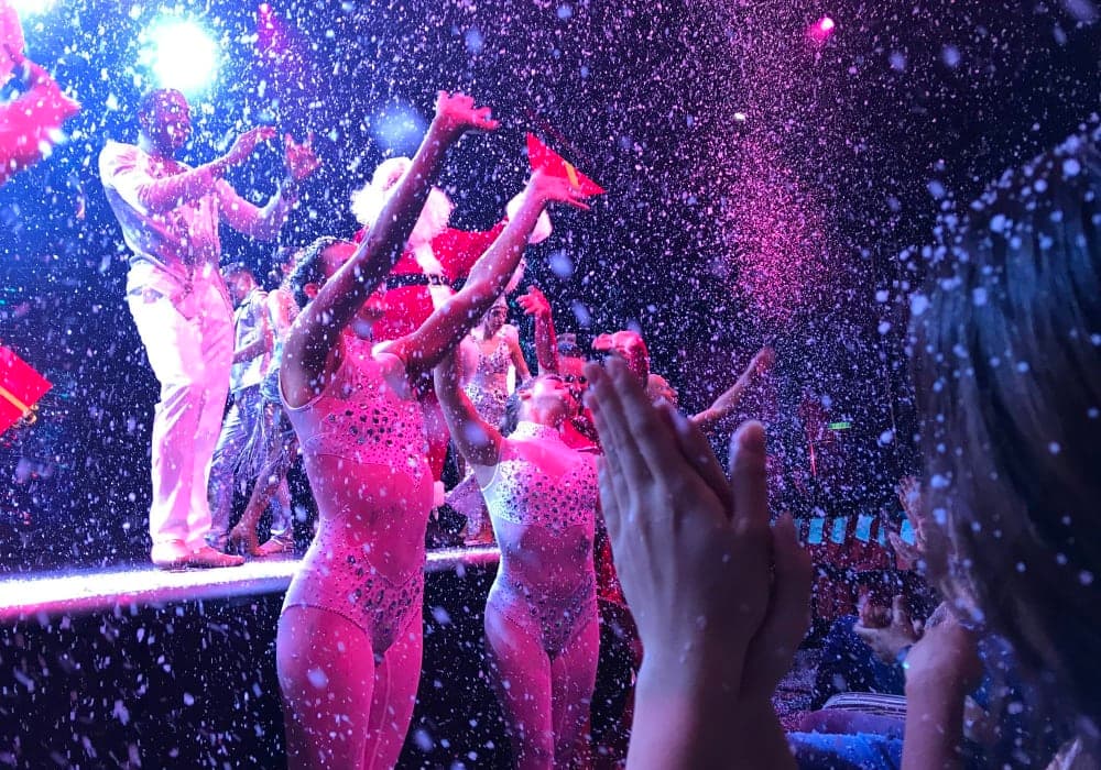 夜のシアターでのショーは見応えありました。 席を予約するようになっていて、うっかりすると予約いっぱい、となってしまいますが、ショーが始まった頃に直接シアターに行けば大抵、空いている席に通されます。