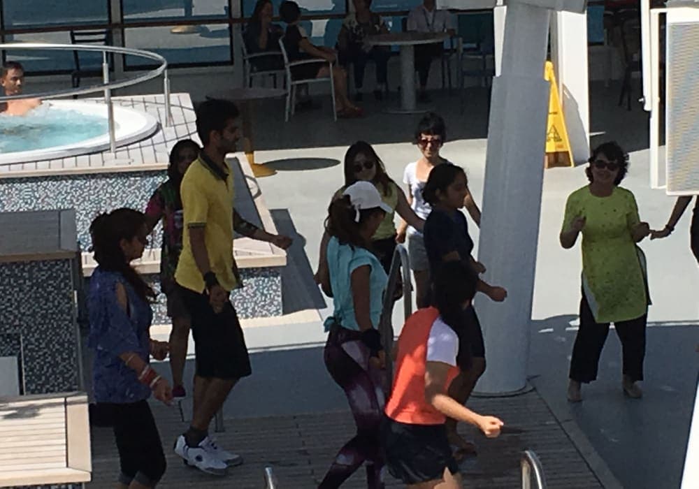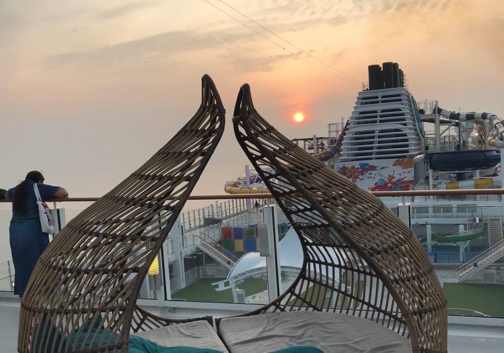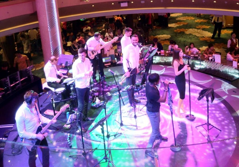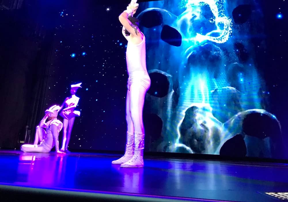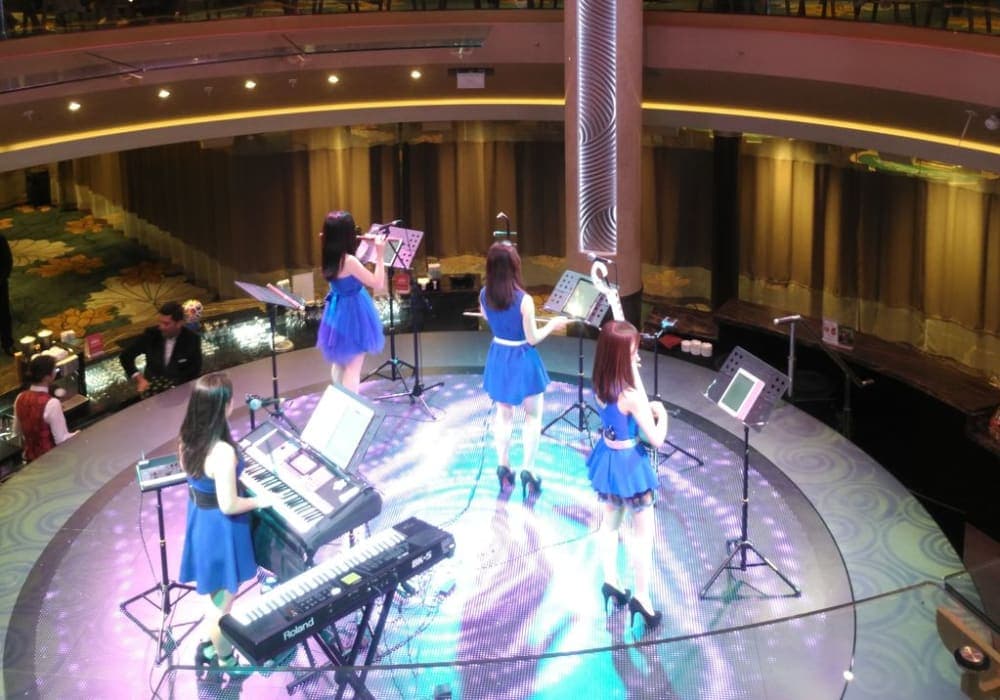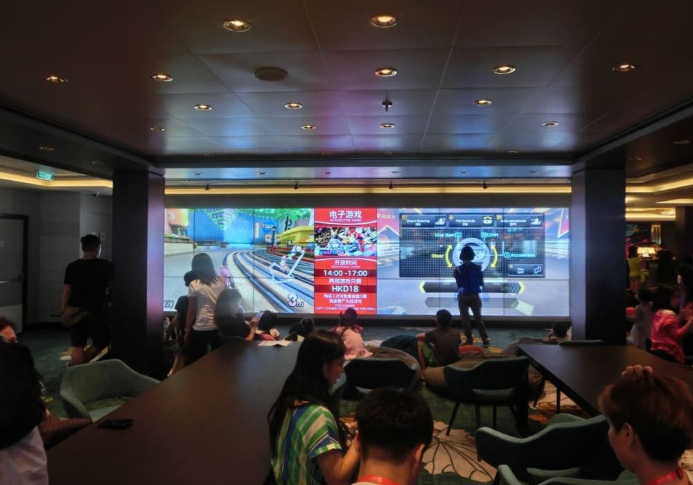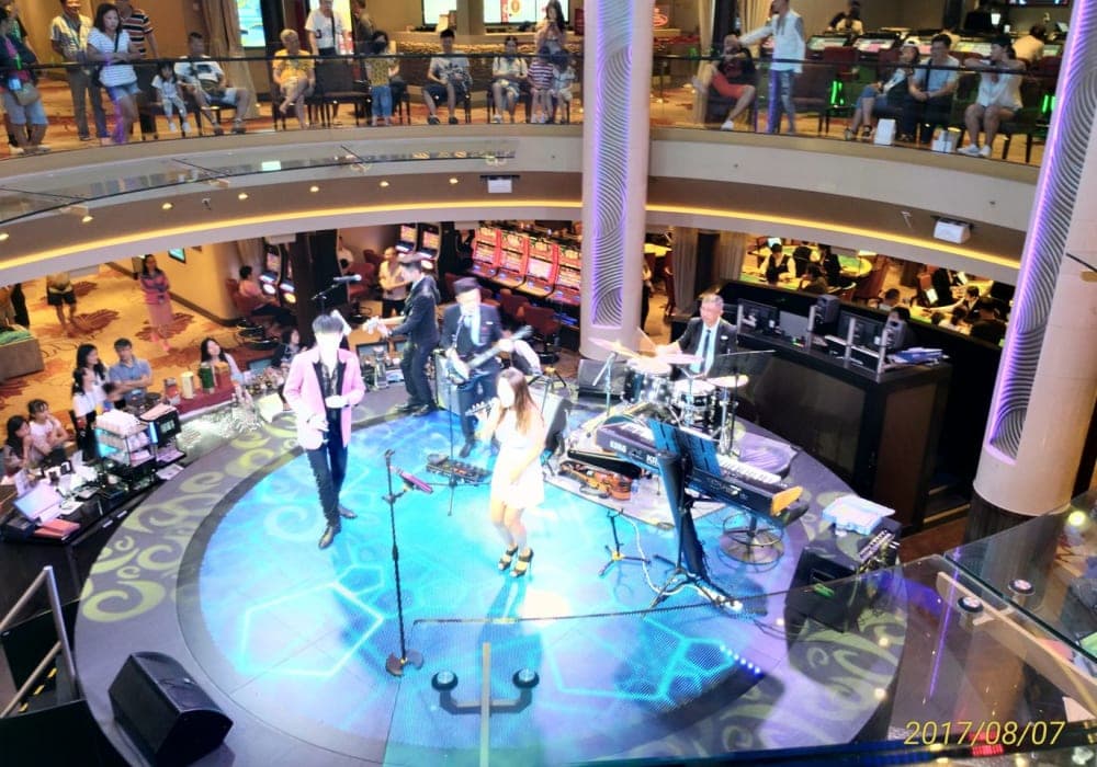 ショーがよかったです。開始直前に行っても、前方の優先席に座れるので安心でした。また、海上で映画を上映していて、階段に置いてある椅子やソファで鑑賞するのもクルーズならでは、と思いました。