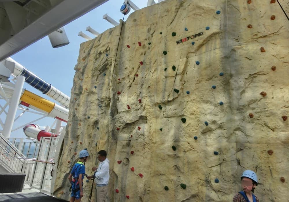 ・ロッククライミングウォール ボルダリングをかじったことがあり、クルーズでのクライミングは楽しみにしていました。登る際、係員から経験を聞かれ、初めてと答えてみたところ、色々と注意点を説明してくれました。ウォールは思っていたより単調で、難易度はとても低いコースでしたので、初心者の方には丁度良い感じでした。 ・ウォー...