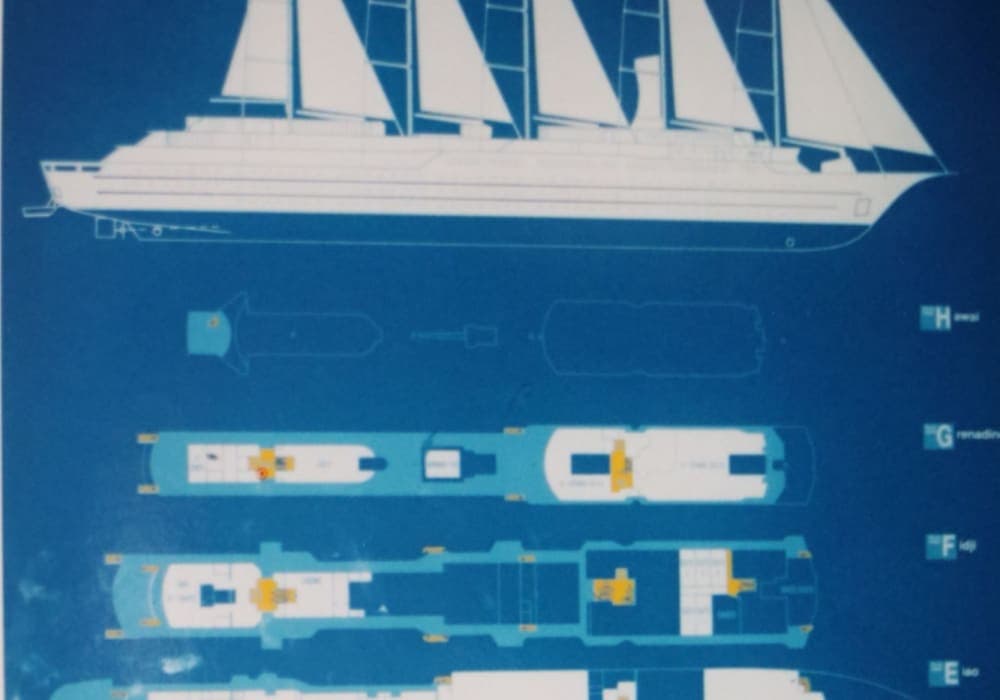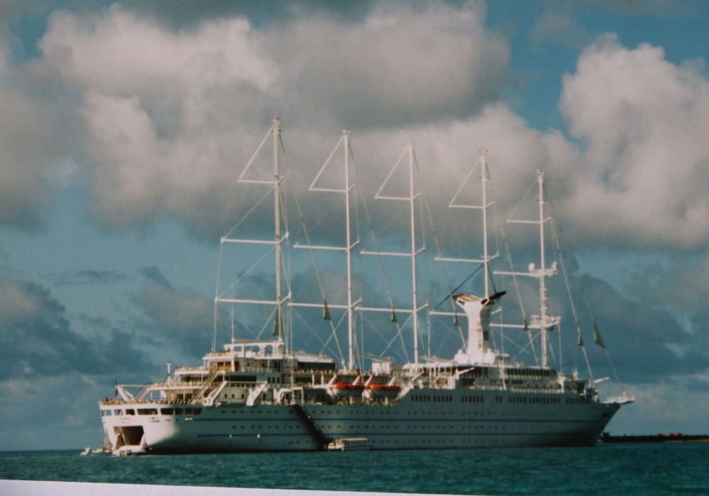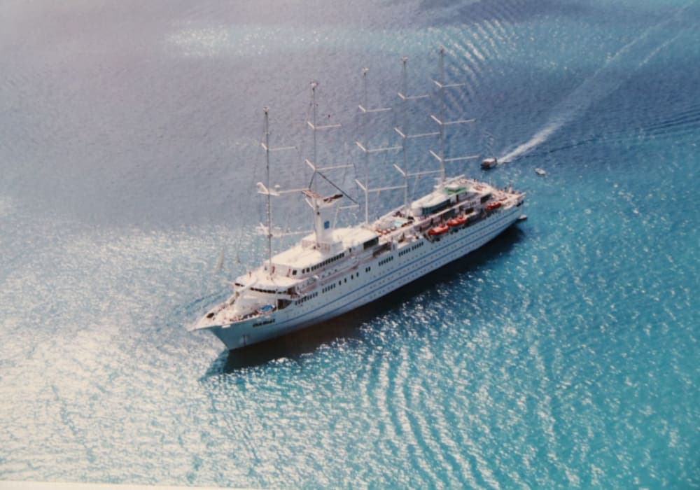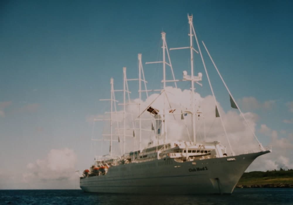 就航して間もない5本マストの帆装クルーズ客船に魅力を感じました。 地中海クラブが日本人向けに往復の飛行機と帆船クルーズをパックしたツアーを売り出しましたが、売れ行きが悪かったのか、途中から大幅に値引きされ、航空券を含めて10万円位で乗船できました。