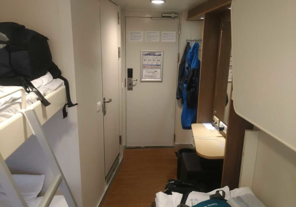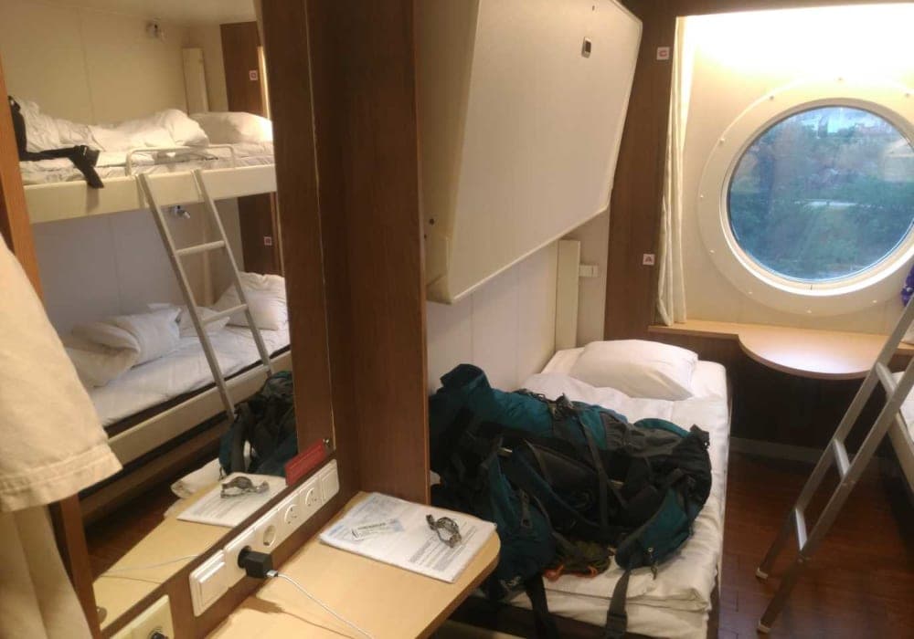 Berth in 4-berth cabin outside (separate places in cabin for women and men)という、男女別4人相部屋海側キャビンに泊まりました。とても後悔しました。 もちろん単独利用できるキャビンの選択肢も普通にあったのですが、クルーズで相部屋というのを珍...