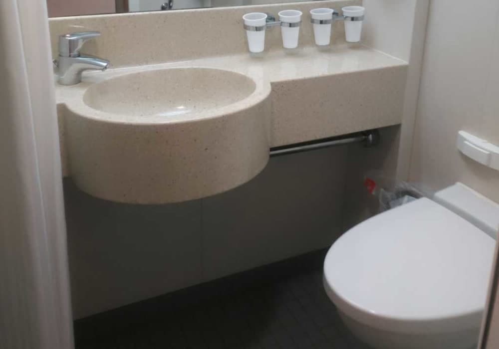 総トン数4,438トンの客船なので部屋は天井は低くて窮屈でしたが全室バスタブ完備でした。 ベランダ付きの部屋などはありません。