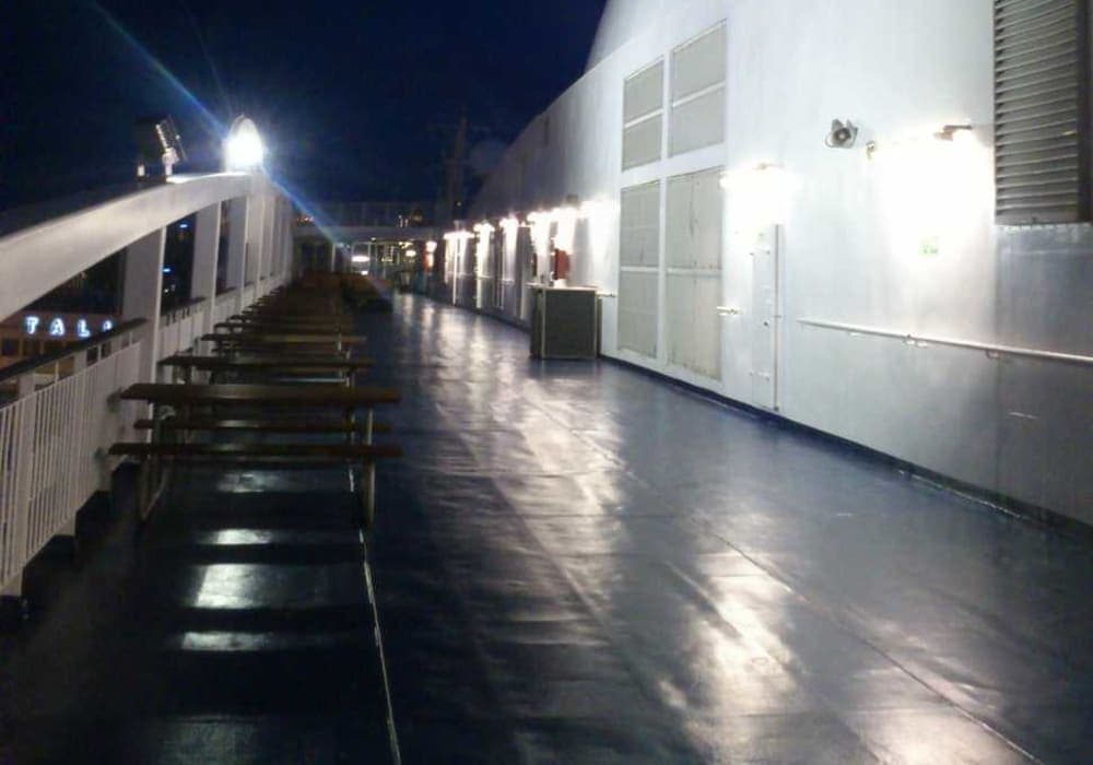 ショッピングやレストラン、アーティストによるエンターテインメントショーが楽しめることになっている船なのですが、それは日中の便の場合のようで、深夜乗船した今回は、極一部のバーのような場所以外クローズしており、利用できませんでした。 スロットマシンは大量に稼働しているように見えましたが、カジノで私はテーブルゲームしか...