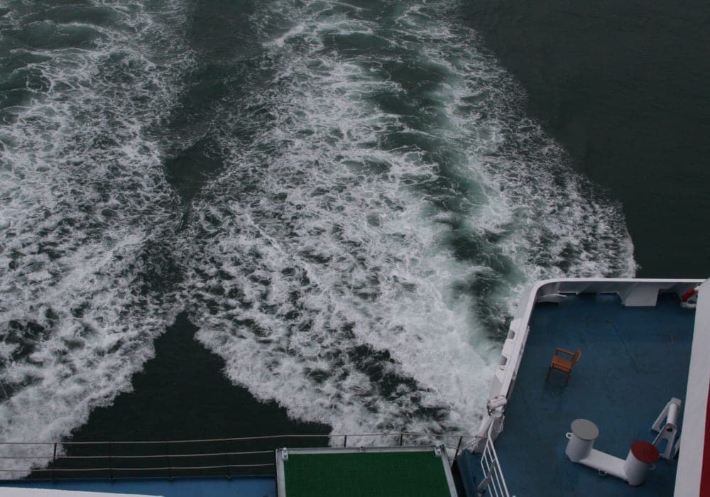 船内に要目表が貼ってあるのではと探したのですが見つからなかったため不正確ですが長さ70~80m前後、幅15m前後、4階建てのそう大きくない船なので食堂と小さな舞台があるラウンジ、ちょっとした土産物が置いてあるショップ以外に特別な施設はありませんでした。 ただ、サンデッキと呼ばれる屋上デッキは操舵室が階下にあること...