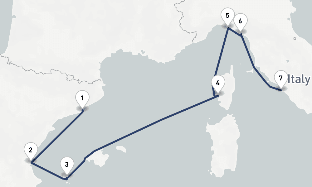 2023年5月27日8日間 / 7 nights / 8 days, one-way from Barcelona to Civitavecchia (Rome, Italy)