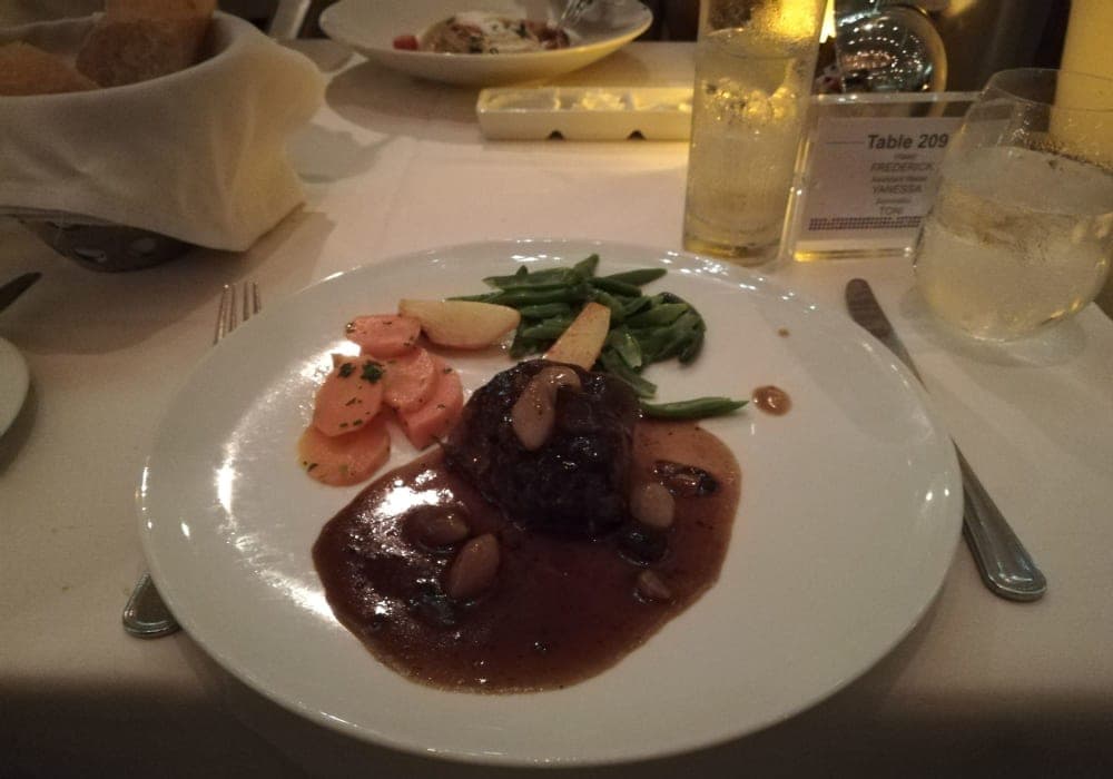 今回はセレブリティ6回目でしたがメインダイニングの料理が前回に比べて劣っている感じがしました。前回はアクアクラスのブルーレストランを主に使用したからかもしれません。また、日本での食べ物が美味しいのでやはり比較してしまします。全体的に肉料理の方が魚料理よりも失敗しないと思います。ブッフェは種類も味も満足でした。あと...