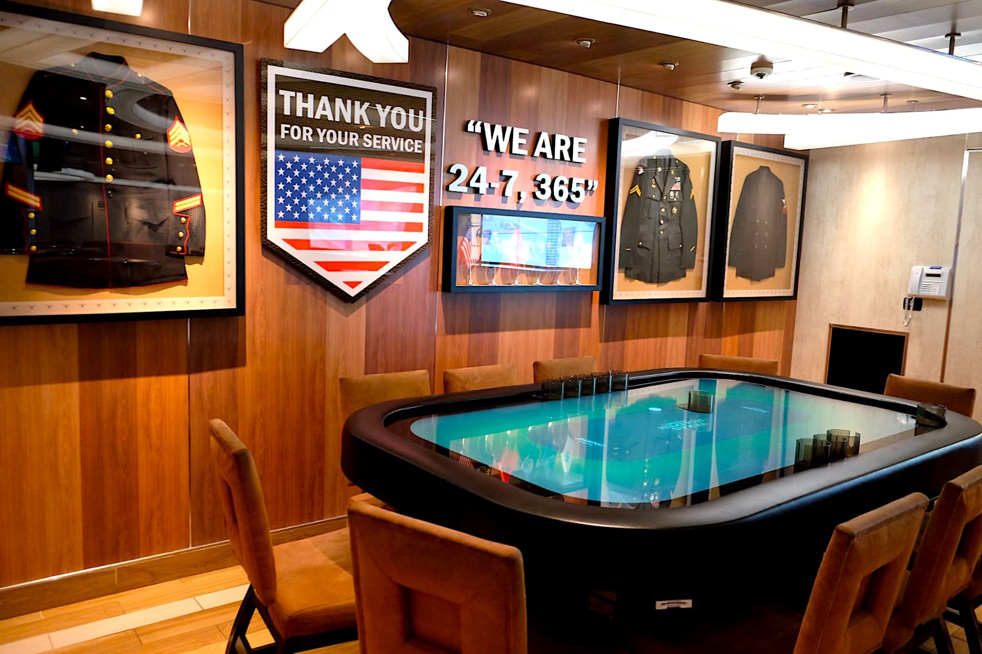ここ、「ヒーローズ・トリビュート・バー・ラウンジ」も同じで、軍人=ヒーローへの感謝を讃える場所として、船内に特別なバー・ラウンジが設けられています。