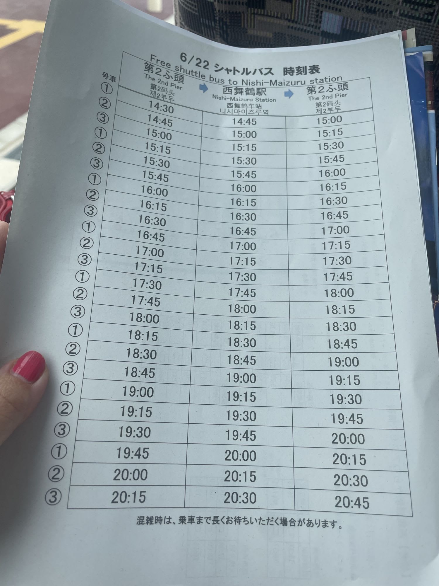 西舞鶴駅行きの無料シャトルバスが運行されました。