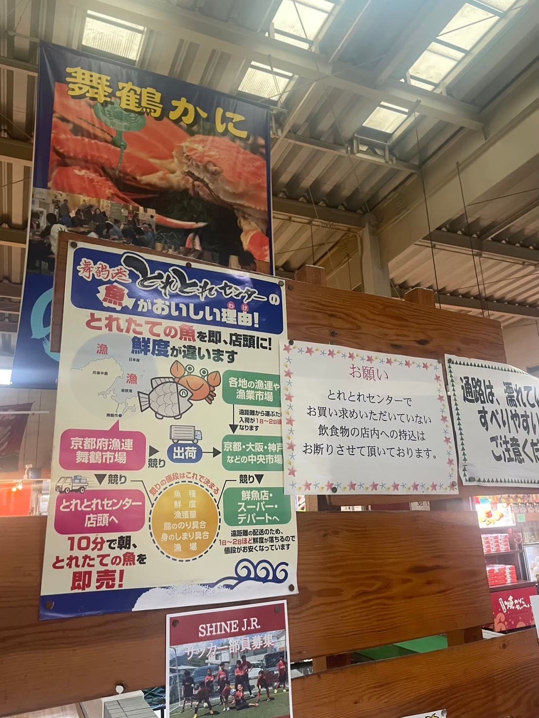 獲れたてのネタの寿司店、海鮮丼中心の食事処、舞鶴かまぼこ・ちくわなどの練り製品専門店、京都北部のお土産がそろう土産店、それに海鮮レストランも併設、舞鶴産の野菜だけのファーマーズマーケット「あぐり」があり、ご来場の皆様に満足して頂いております。とれとれセンターWEBサイトより