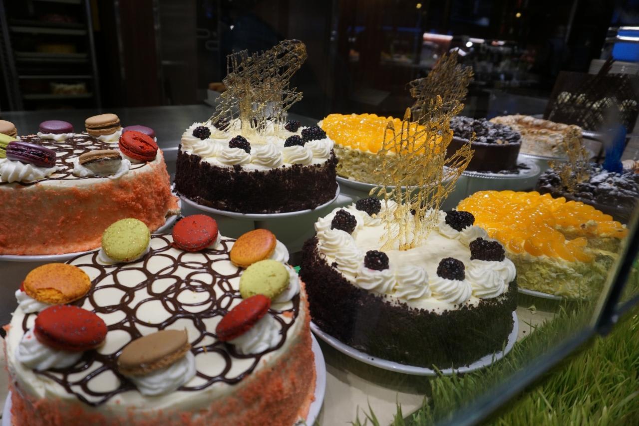 外国の映画に出てきそうな色合いのポップなカラーのケーキや、ずっしり濃い目のチョコレート系など想像を超すラインナップをお楽しみください。