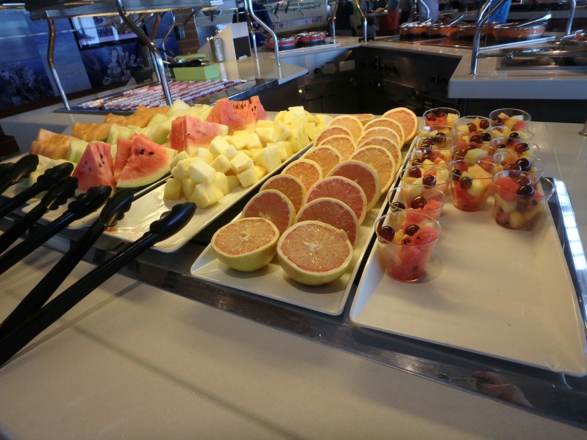 クルーズ客船のブッフェもフルーツが並んでいます。