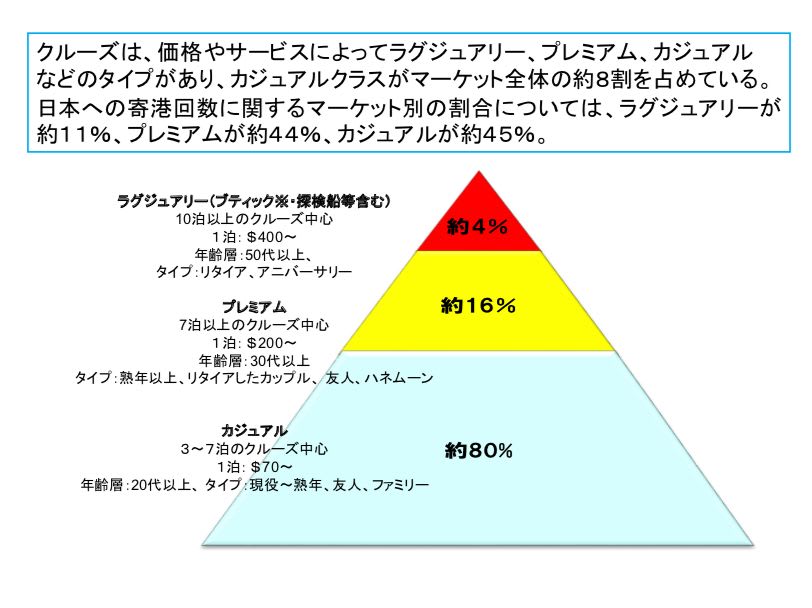 資料の「Cruisemans」というのがですね、こちらはどういうサイトかというと、現実的にひょっとしたらこちらに関係者の方がいたら怒られちゃいますけど、クルーズをメディアで発表している例えば雑誌とかテレビとかですと、「極上」とかあるいは「豪華」とか。