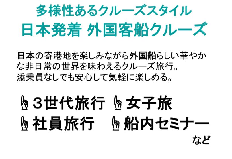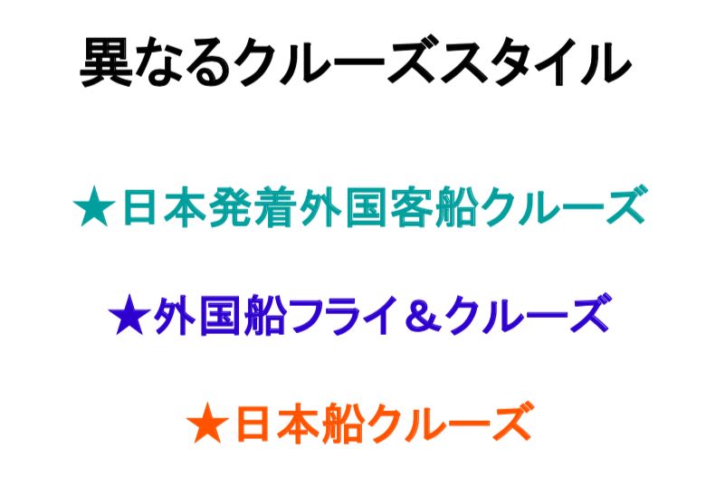 恐らくクルーズが初めての方とかは、ポスター見たり、テレビ番組見たりすると全部一緒になっちゃうんじゃないかなと思うんですね。