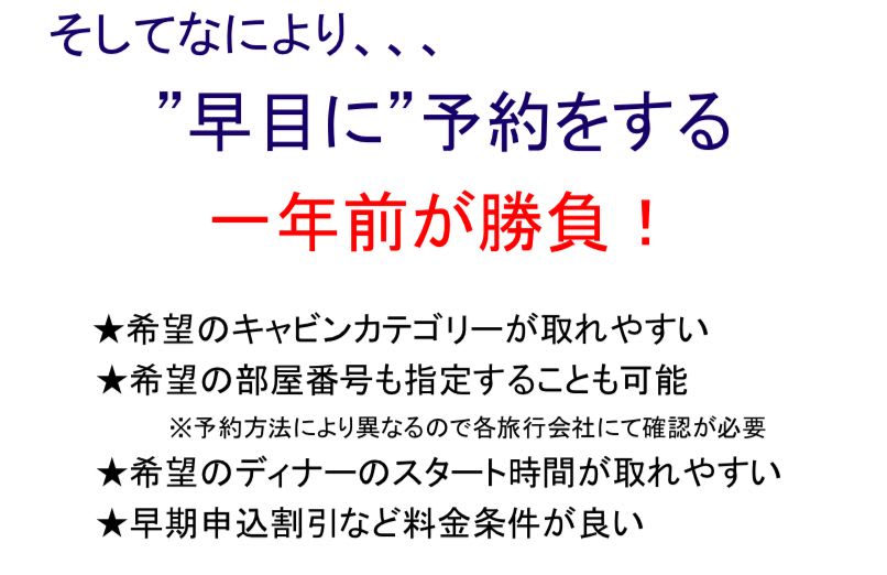 ★第2部の「失敗しない上手な予約のコツと乗船後120%楽しむ方法」についてお送りします。