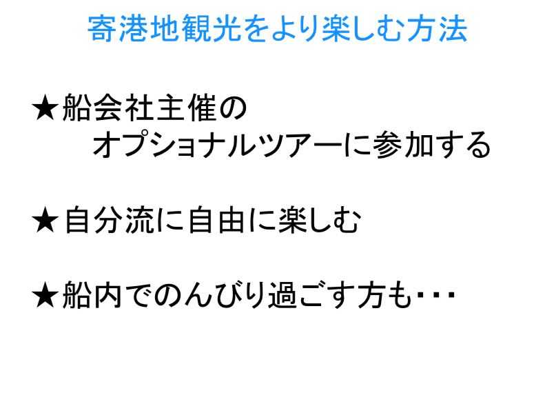 「寄港地観光をより楽しむ方法」ということですけれど、3つの楽しみ方があるんですね。