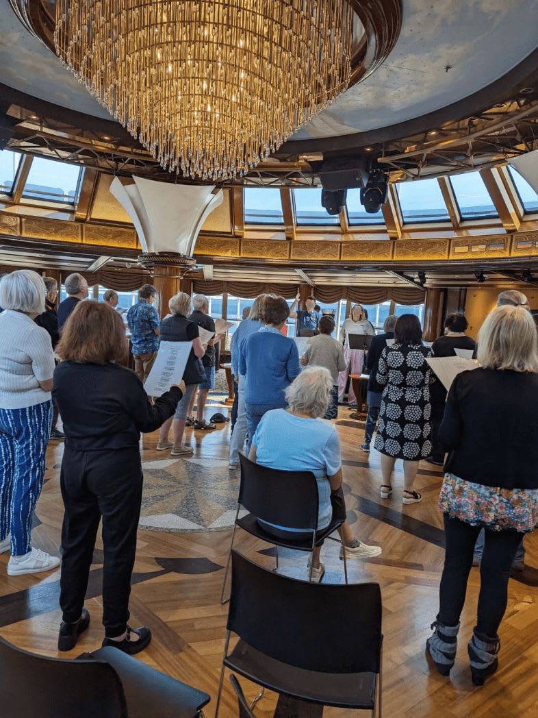 横浜発バンクーバー着クルーズ時の合唱アクティビティの様子/seaday.mr