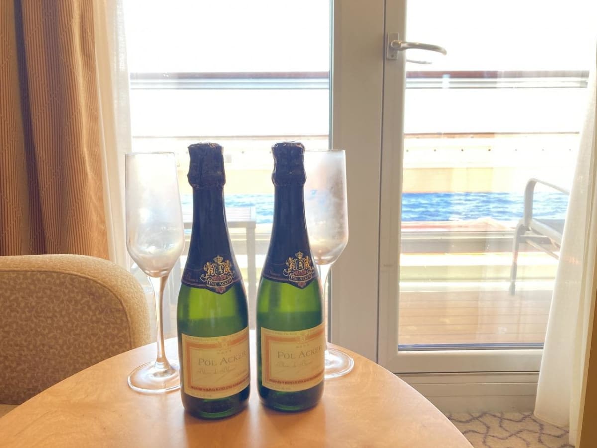 まず乗船した後、最初に客室に入って嬉しくなることのひとつに「ウェルカムシャンパン」があります。