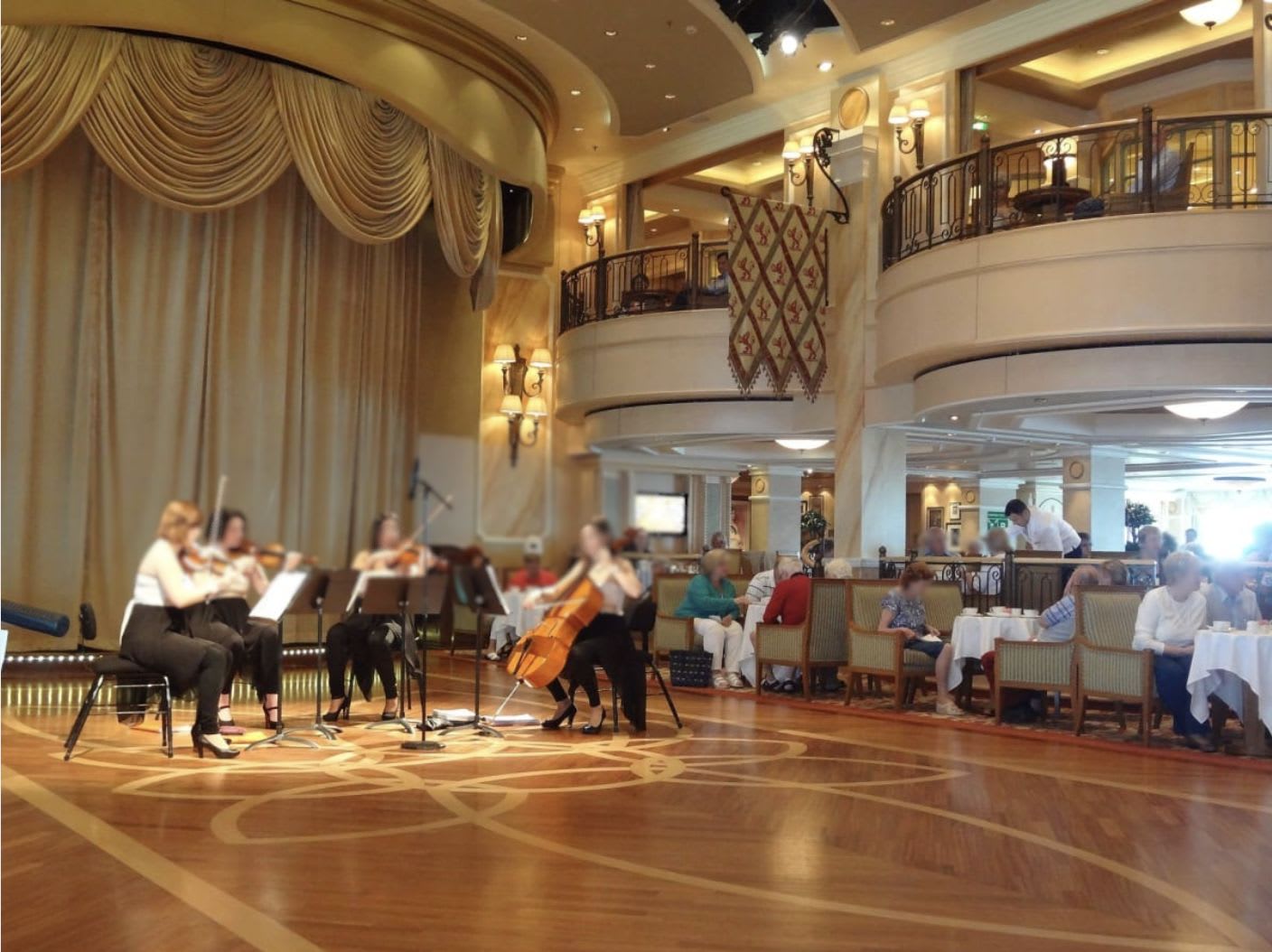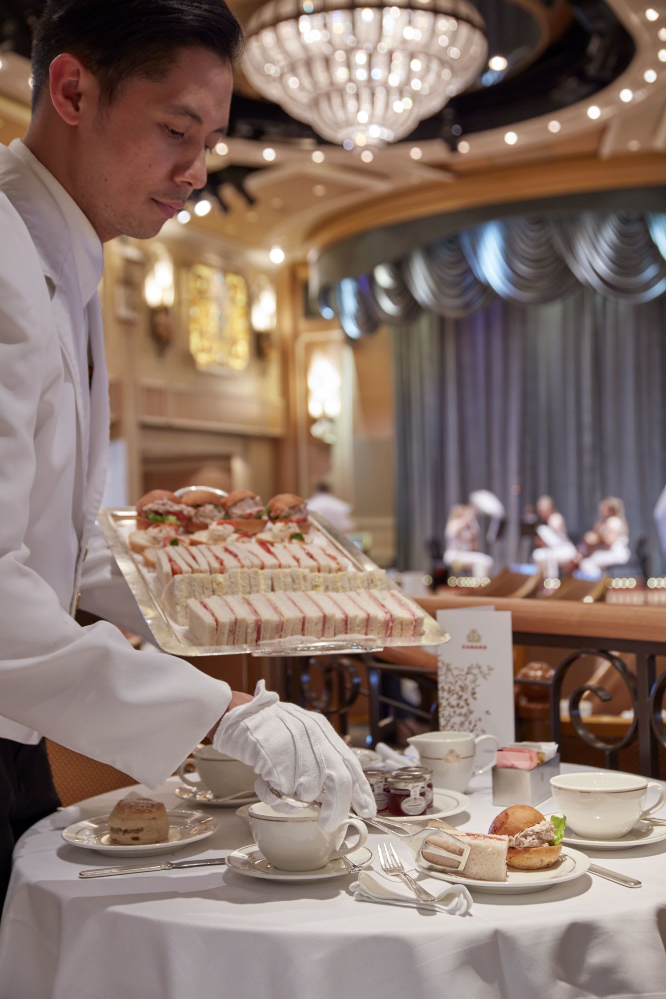 さまざまなアクティビティの中でも、キュナードらしさ全開なのが、「アフタヌーン・ティー」 なのではないでしょうか? 追加の料金や予約も不要なので、初心者の方でも安心して本場英国式のお茶の時間を楽しむことができます。
