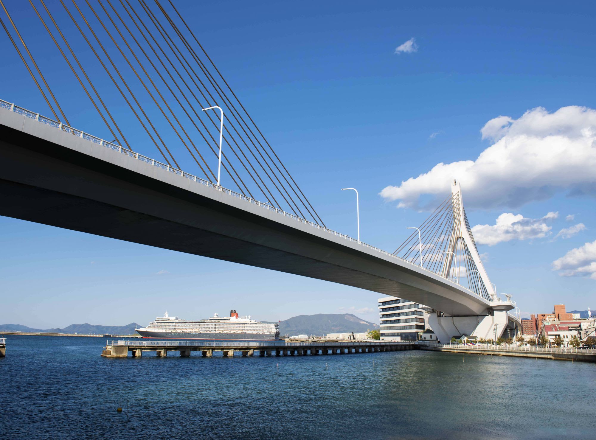 青森市の青森ベイブリッジとクイーン・エリザベス/©️Cunard